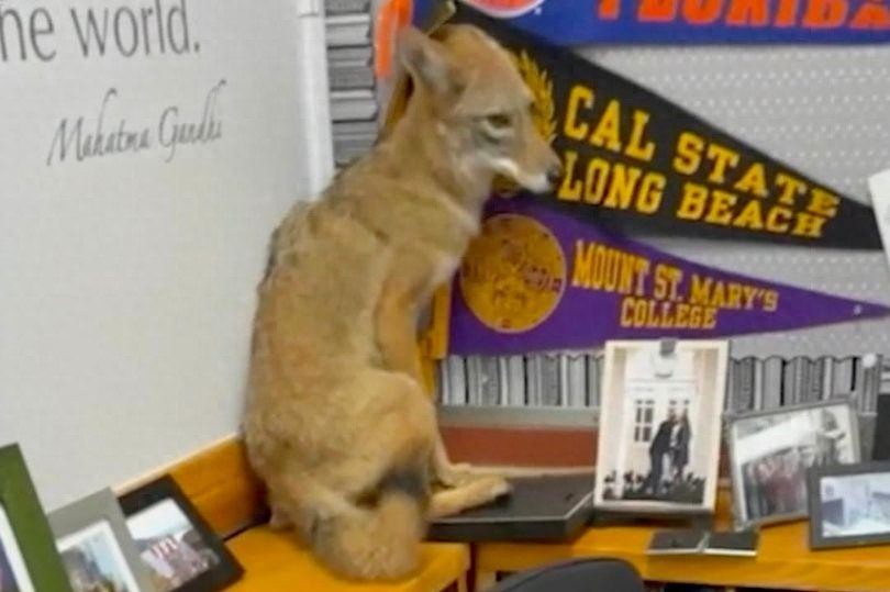 美国一中学惊现丛林狼,闯教室并跳上办公桌,学校笑称其为吉祥物
