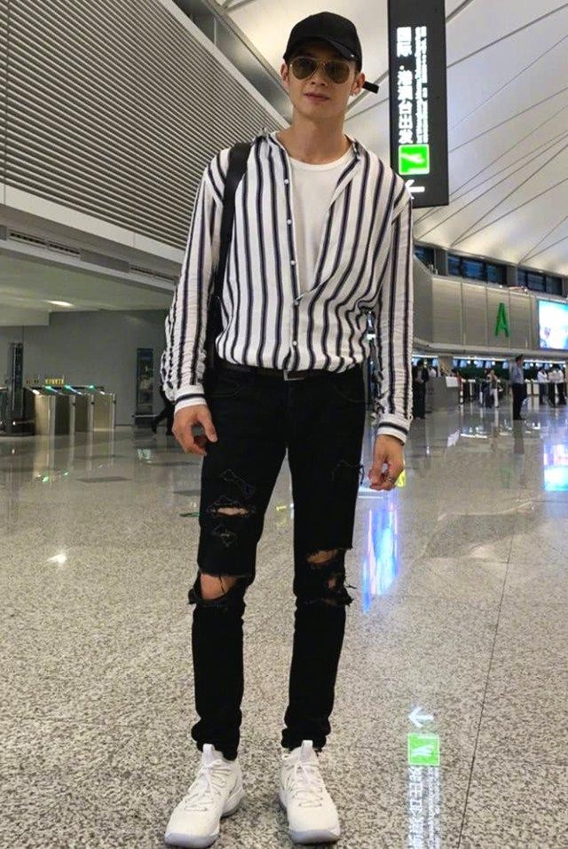 辰亦儒的身材高挑挺拔,完美的身材比例,分分钟都是行走的衣架子,一起来看看吧!辰亦儒一件黑白条纹衬衫,内搭一件白色圆领上衣,简约又随性。搭配一条黑色的破洞牛仔裤,街头范十足,脚踩一双白色运动鞋,头戴黑色棒球帽,佩戴个性墨镜,整体看起来时尚又帅气!