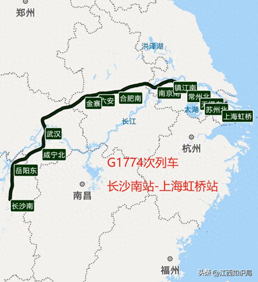 长沙至上海高铁,走武汉、合肥,G1774次列车耗时6小时16分钟