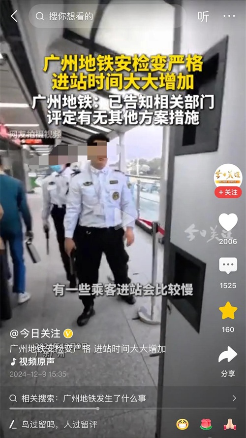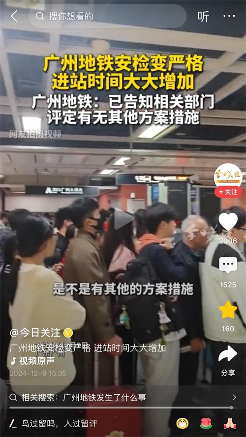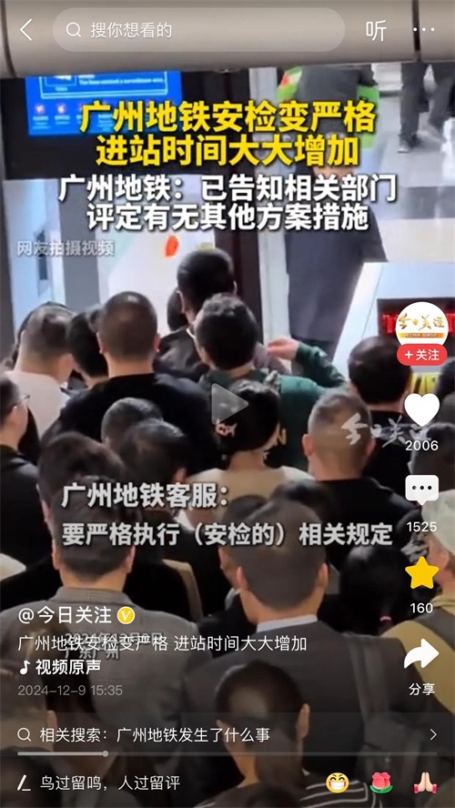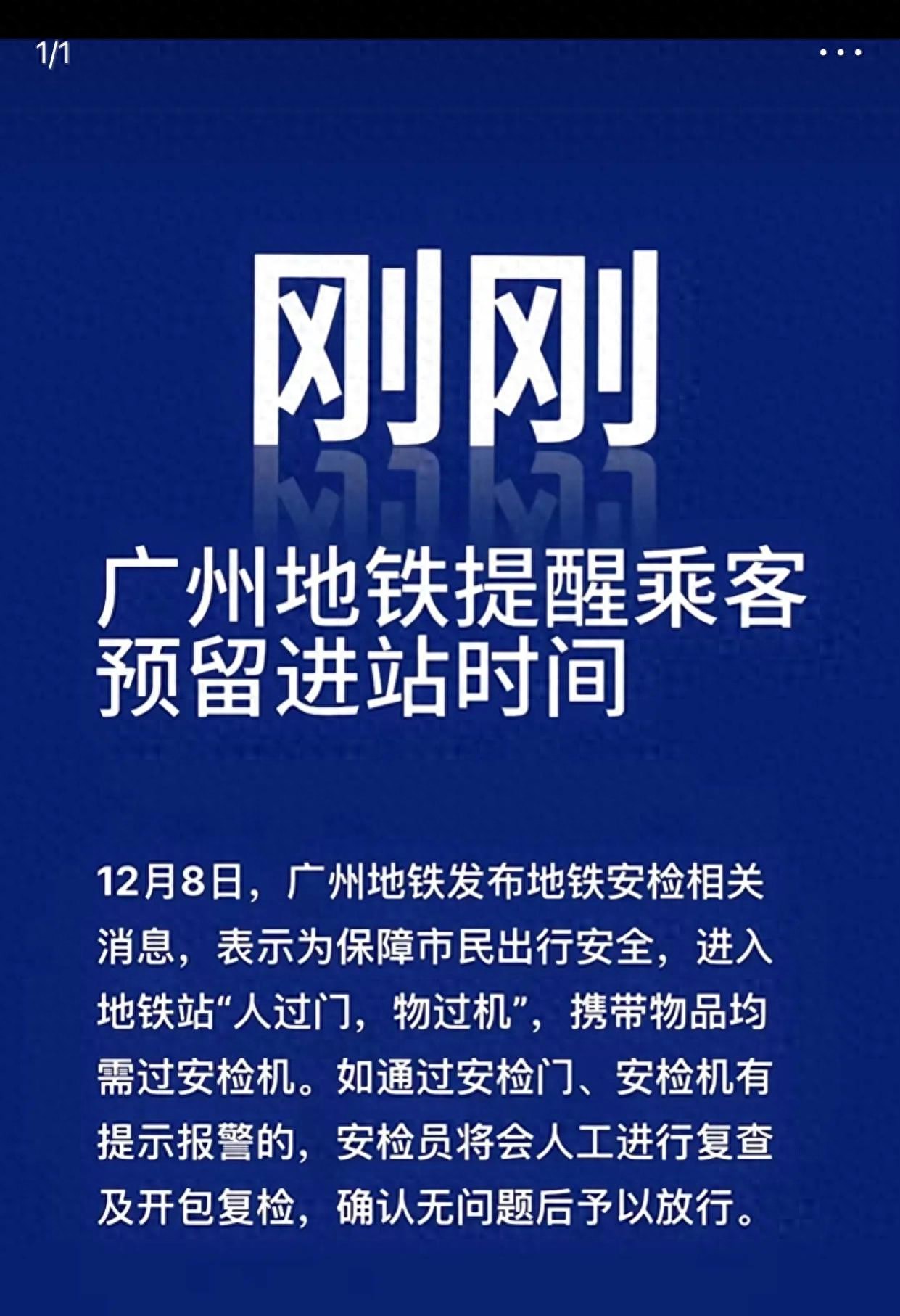 12月初,广州地铁全面加强安检,要求“人过包必检”。这原本是一项保障乘客安全的措施,却因检查时间过长导致通勤效率骤降,高峰期排队成了常态。