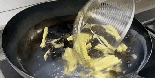 腐竹要焯一下水才更好吃,这一步也很简单。锅里烧开水,把腐竹和黑木耳一起下锅,焯个一分钟就好,这样不仅能去掉豆腥味,还能让黑木耳的口感更脆。捞出来沥干水分,就可以开始拌了。
