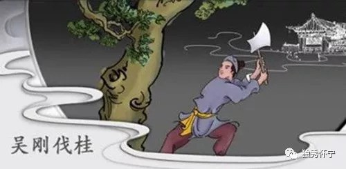 有一位西河人姓吴名刚,本为樵夫,醉心于仙道,但始终不肯专心学习,因此天帝震怒,把他居留在月宫,令他在月宫伐桂树,并说:“如果你砍倒桂树,就可获仙术。”