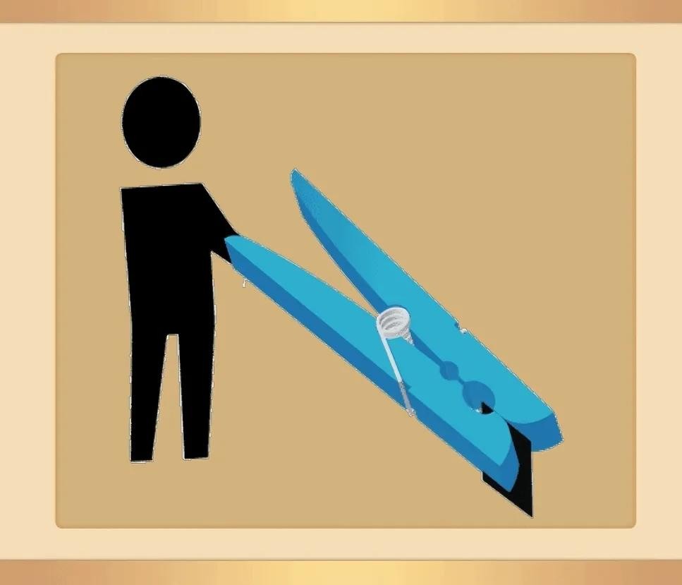 一个人拿着一个比人还大的夹子夹东西。