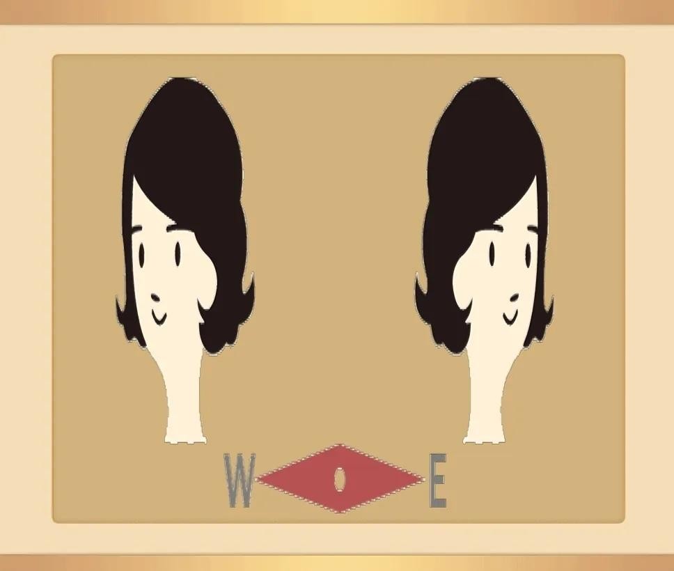有一个方向标,指着“W”和“E”,还有两个女孩头像,一个朝着“W”,一个朝着“E”。