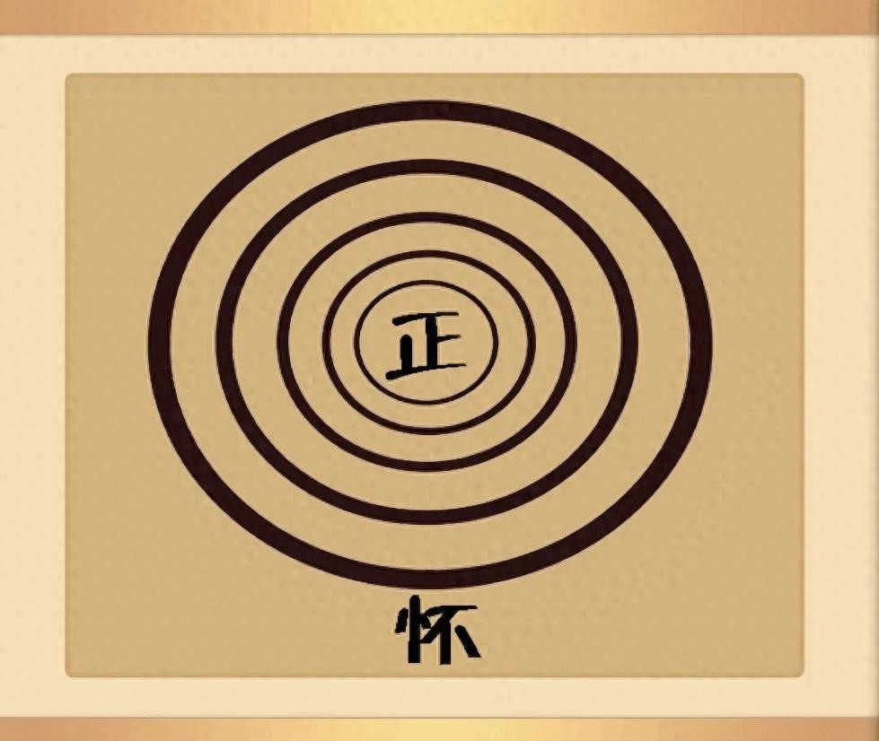 一个射击靶的正中间有个“正”字,最边边上有个“怀”字。