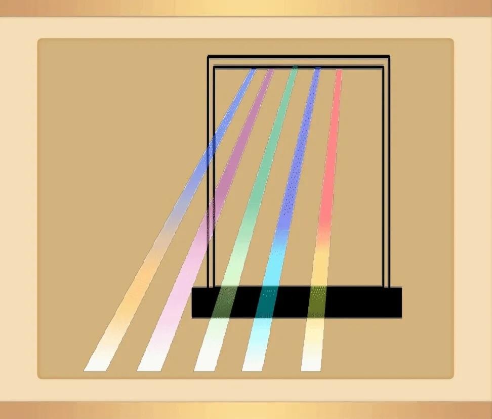 五束彩色的光线从窗口射进来了!