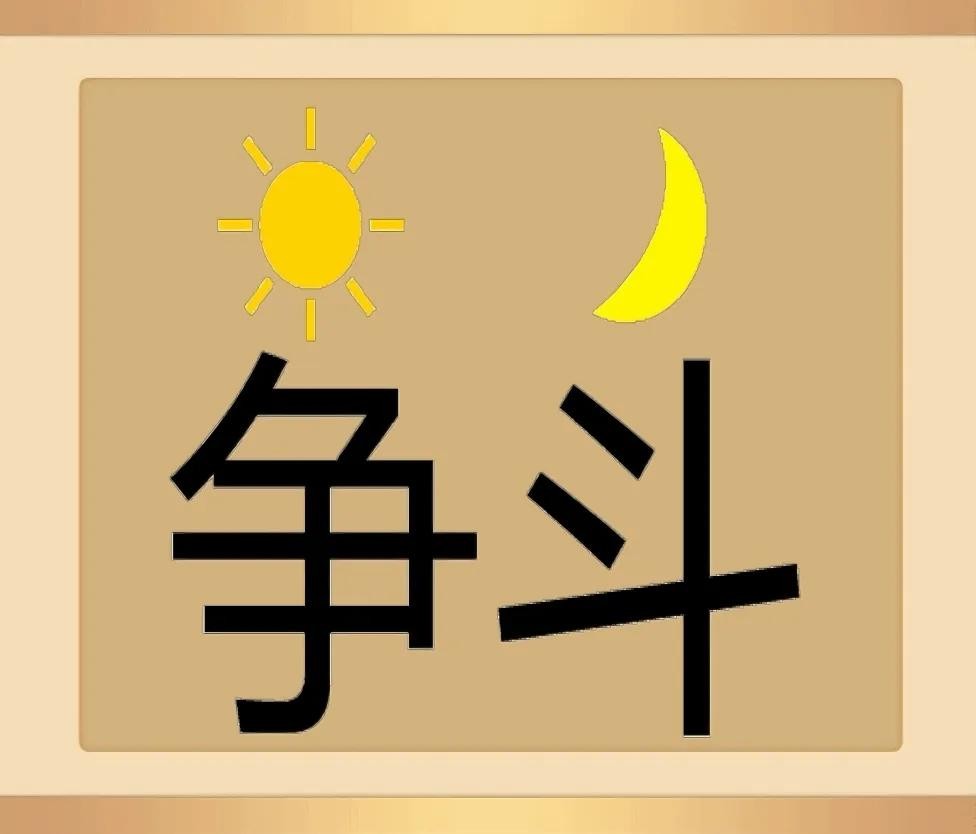 一个“争”字上面有一个太阳,一个“斗”字上面有一个月亮。