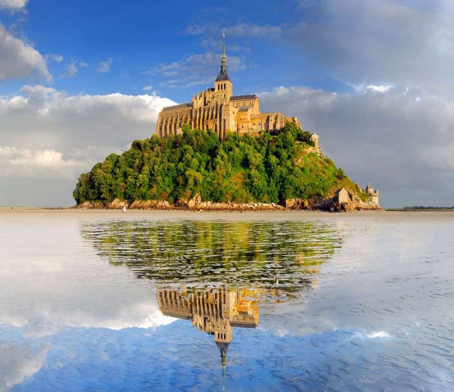 9.法国,圣米歇尔山城堡,它位于法国诺曼底附近,是距海岸约1公里的岩石小岛,为法国旅游胜地,也是教徒的朝圣地,山顶建有著名的圣米歇尔修道院。圣米歇尔山及其海湾于1979年被联合国教科文组织列为世界文化及自然遗产。