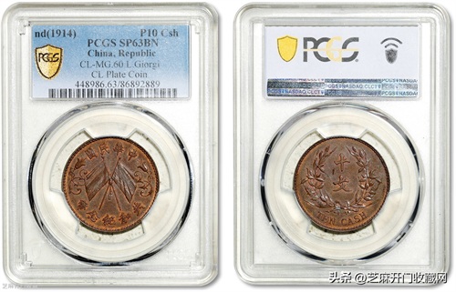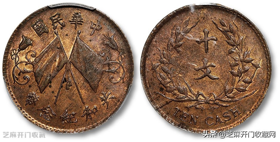1:共和纪念币双旗十文签字版红铜 PCGS SP 62,估价: RMB 100000-200000,成交价格: RMB 540500