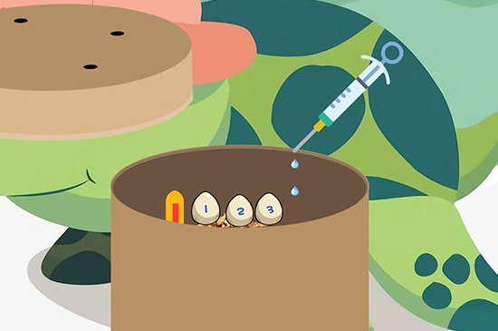 乌龟蛋孵化,需要找一个带盖子的盒子,四周各用电烙铁打一个小孔,在内部铺好消毒杀菌后的蛭石,将龟蛋放入其中,盖上盖子,等孵化60天的时候,用针管吸入纯净水倒入龟蛋周围的蛭石内。