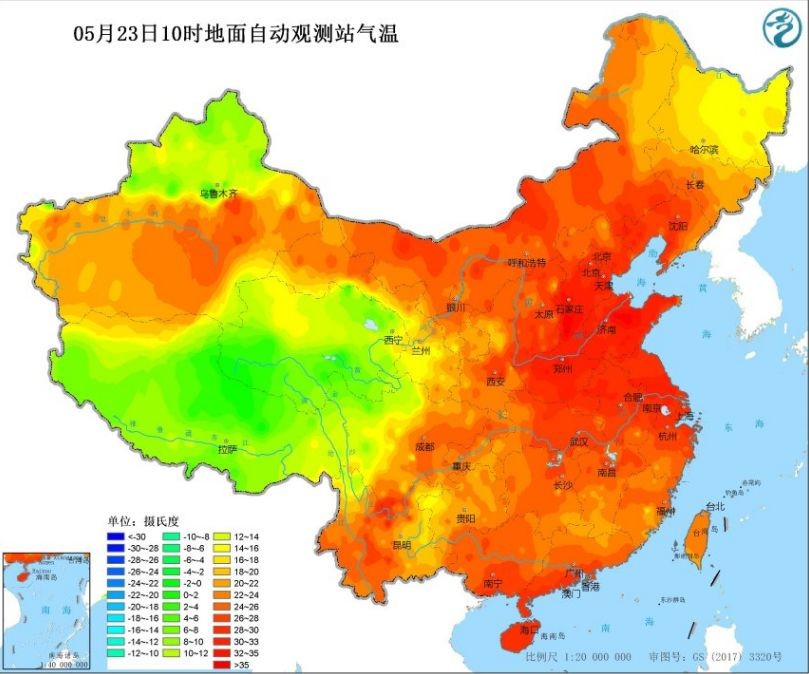 等北部地区今天是此轮高温范围最大