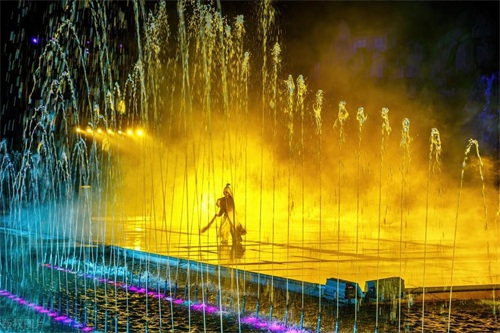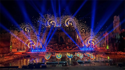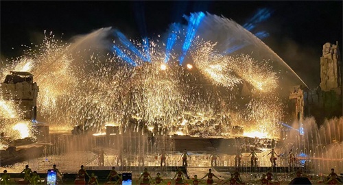 晚上七点半开始,超炫的灯光秀、加上真人舞蹈演出加上打铁花,buff叠满!!非常震撼的视觉盛宴!