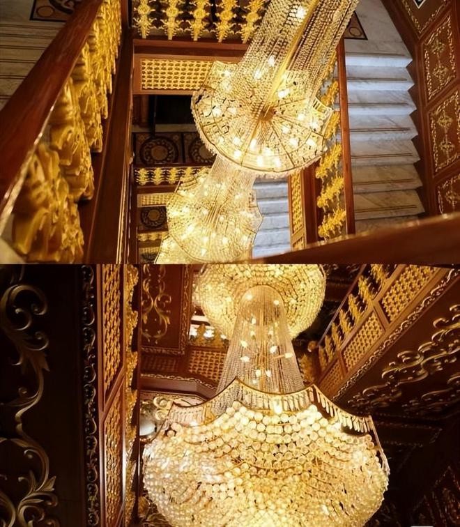 近日,随着药厂原址的对外开放,其内部的精美装潢也得以曝光。从楼梯廊道到各个展厅,处处皆是金碧辉煌,灿烂华美。主楼中央大厅的巨型吊灯,采用晶莹剔透的水晶精雕细琢而成,价值高达千万元。