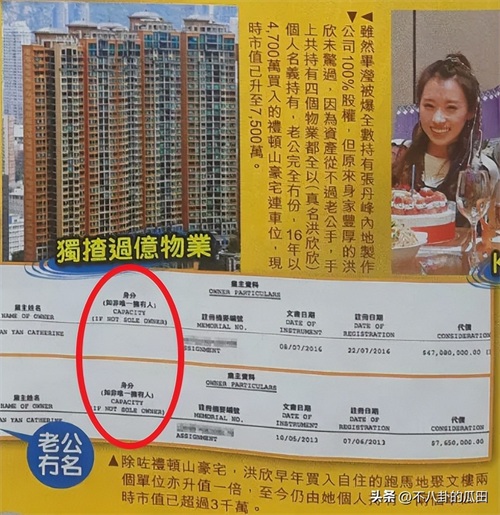 早前港媒就报道过,洪欣名下有过亿的物业,而且这些物业都是洪欣个人名下的,并不是夫妻共有的,难怪洪欣这么有底气。