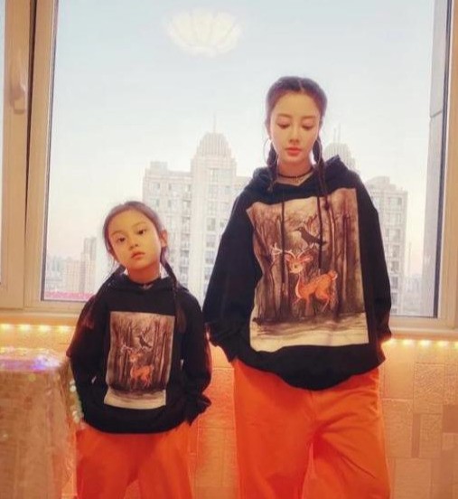 而今年三月份,李小璐再次晒出自己和小甜馨的亲子装照片,两人穿着黑色卫衣橘色长裤,十分酷帅有型,这时的甜馨却已经与妈妈肩膀同高。