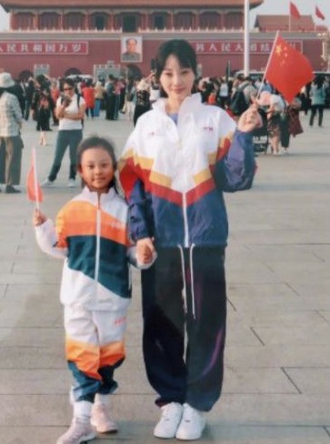 2019年,李小璐在社交平台上晒出一张与甜馨在天安门前的合影,两人都身穿运动服,手拿国旗,满脸笑容地看着镜头,而当时的甜馨身高已经长到李小璐胸口位置。