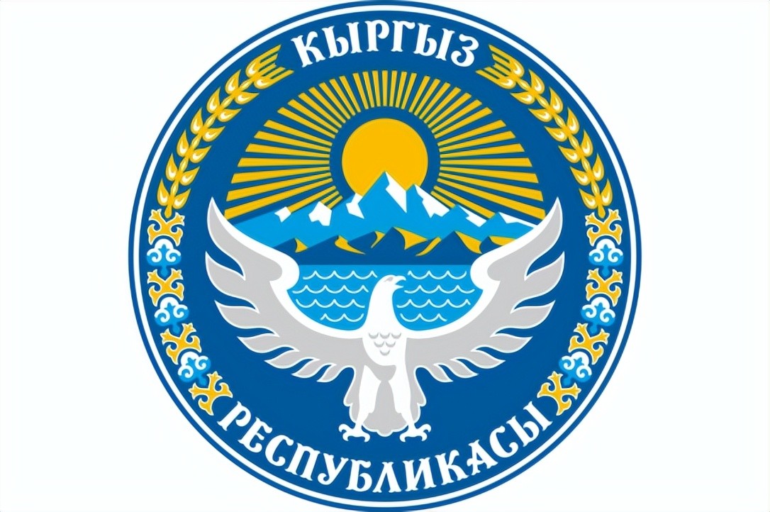 吉尔吉斯斯坦的国徽为圆形,中间上方是太阳在天山上升的景象,下方是展翅的雄鹰。外围书有“吉尔吉斯共和国”,并用麦穗和棉花进行装饰。