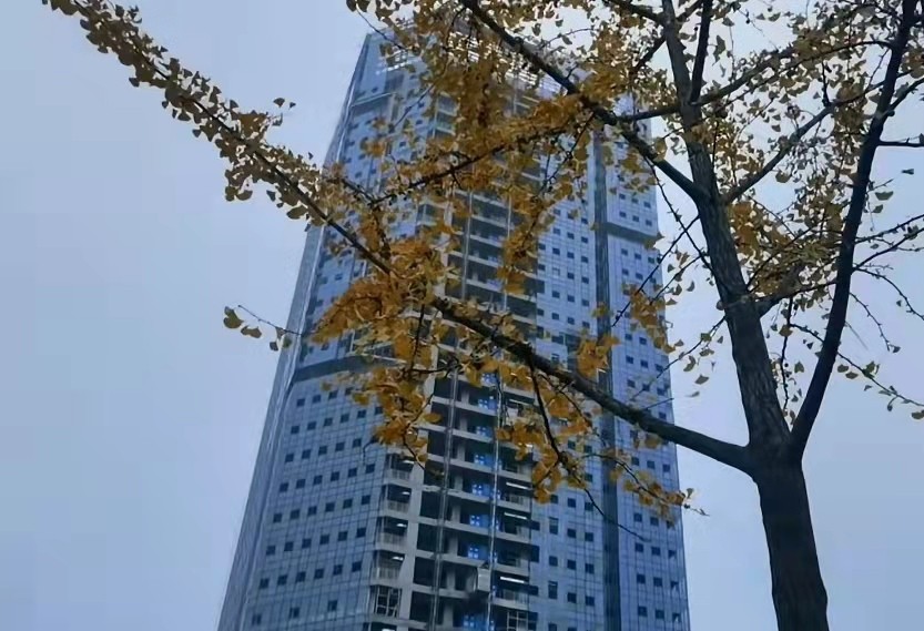 项目一波多折,目前最高的办公写字楼已封顶,幕墙安装接近尾声。