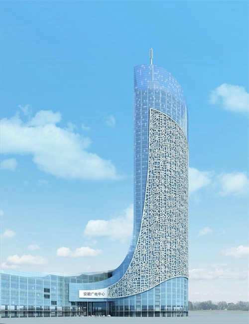 项目最大的特点在于外立面幕墙,就是用篆书字体书写了安徽各地的地名、河名、湖名、山名等的汉字,是一座极具特色的摩天楼!