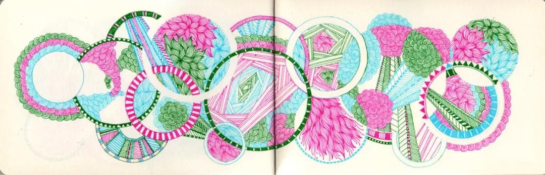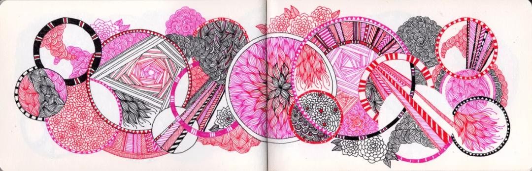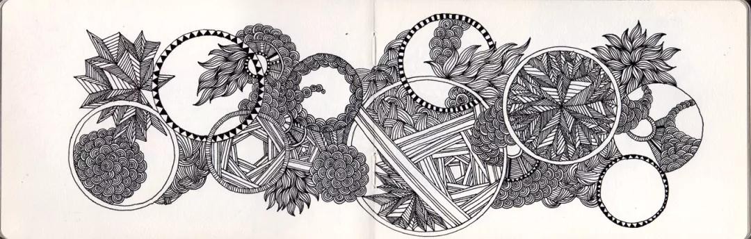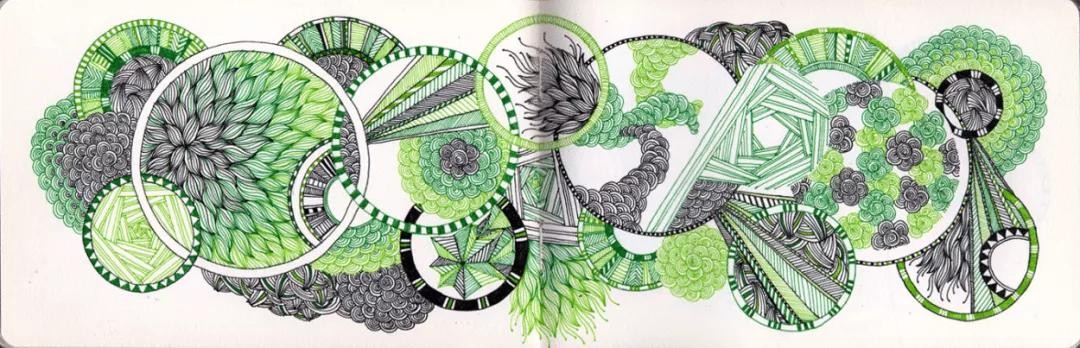 涂鸦法也不完全是我们想象中很随性、凌乱,不规则的涂鸦作品,也有看上去很整齐的,需要圆规和直尺这种工具来创作的作品。