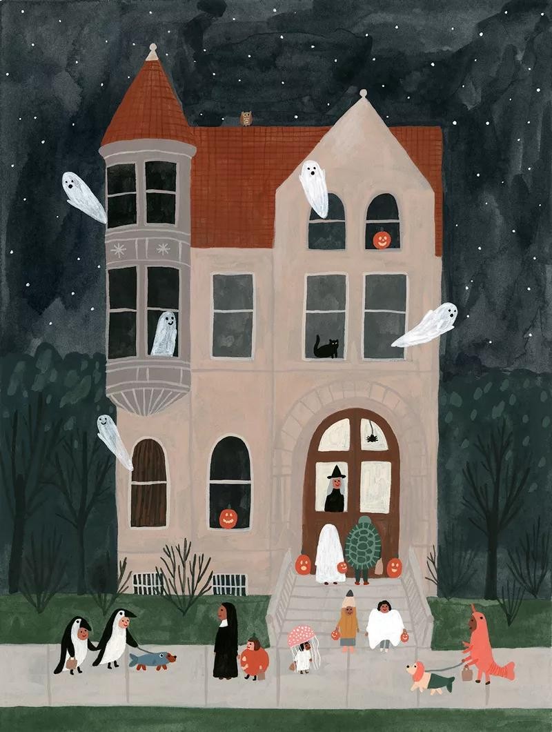 这幅作品的概念是“万圣节”,我们可以看到画面上是万圣节一家人庆祝的情景。