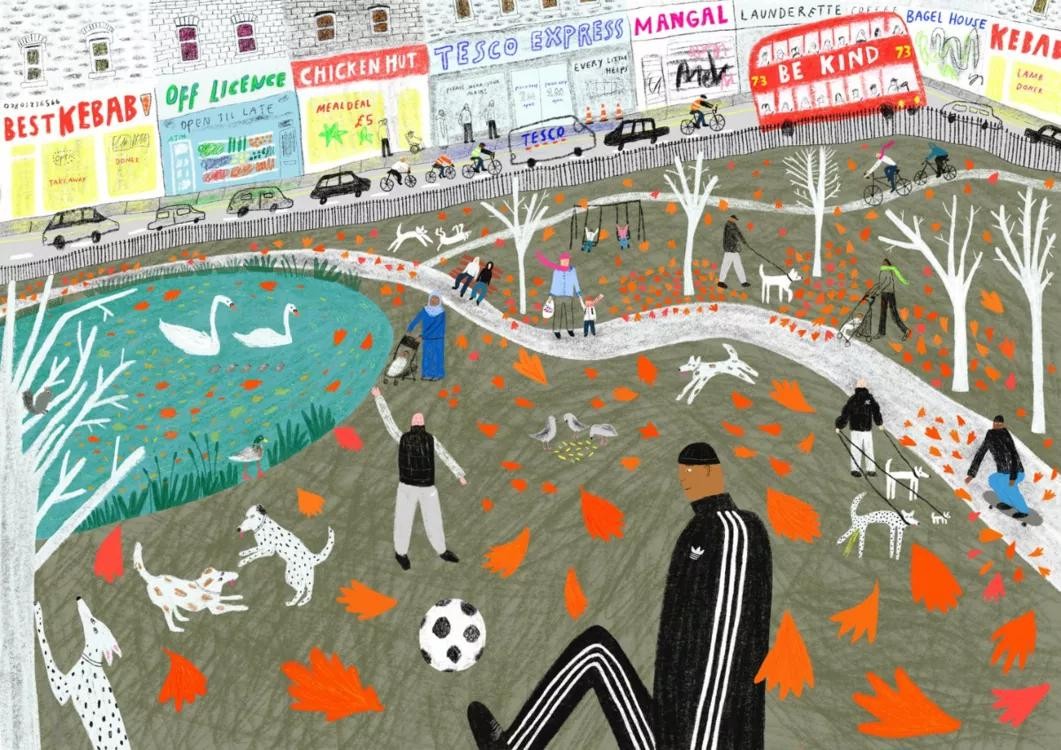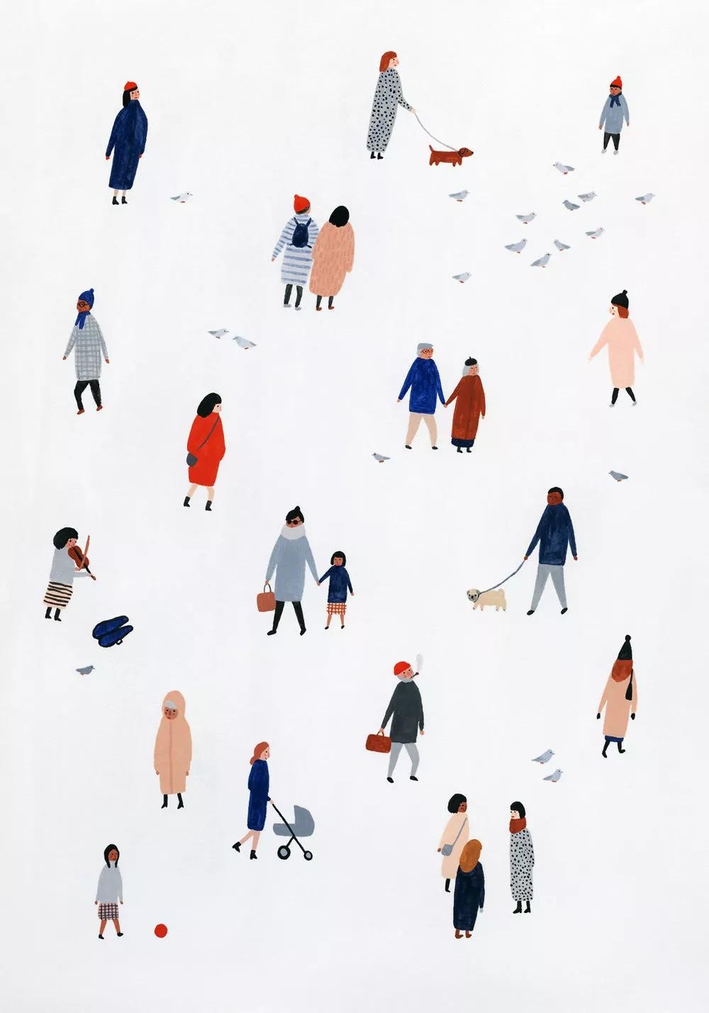 比如来自英国伦敦的插画师Pia Bramley的作品,他着重描绘了人物并简化了背景。