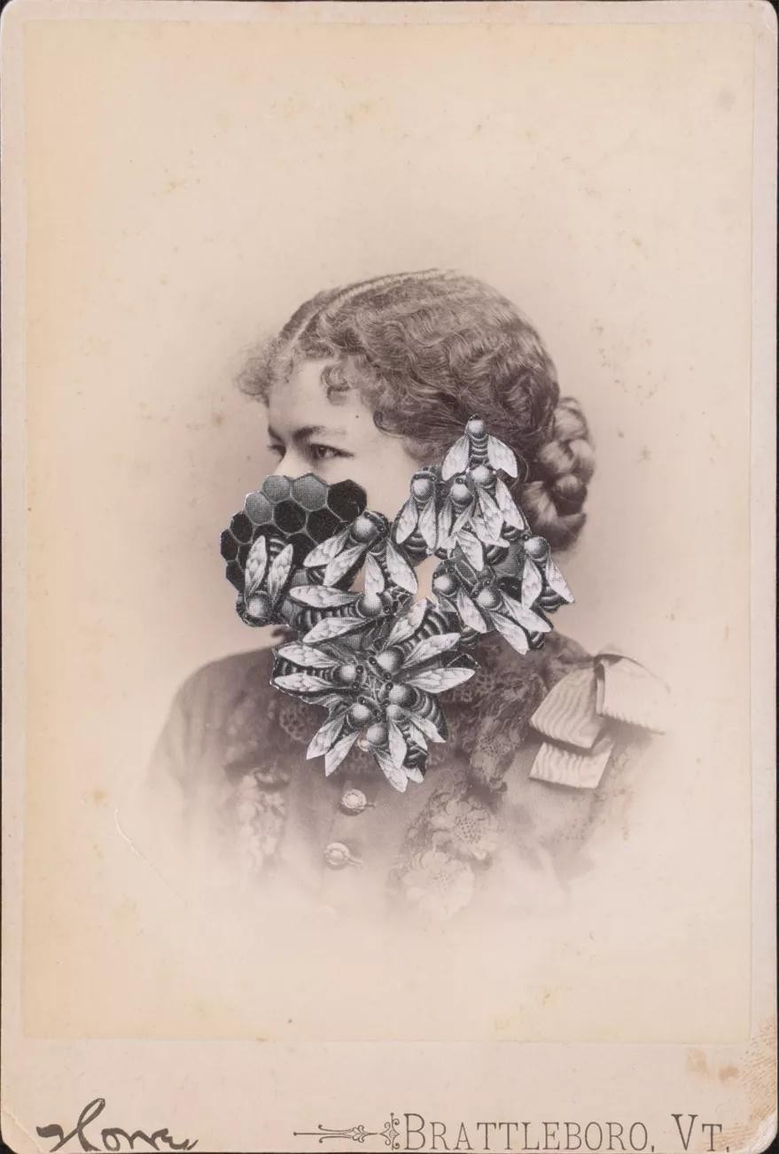 他用旧杂志、书籍和报纸创造了不同的纹理,将人物、装饰物和风景拼贴到一起,看上去颇具超现实主义,色彩和构图生动而具有趣味性。