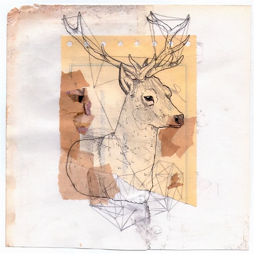 例如,插画师diedie利用被遗弃的材料进行创作。泛黄、陈旧、有污渍的底纹纸和用石墨铅笔、水彩、钢笔手绘的小动物形成了鲜明的对比,让画面看上去很有趣味性。