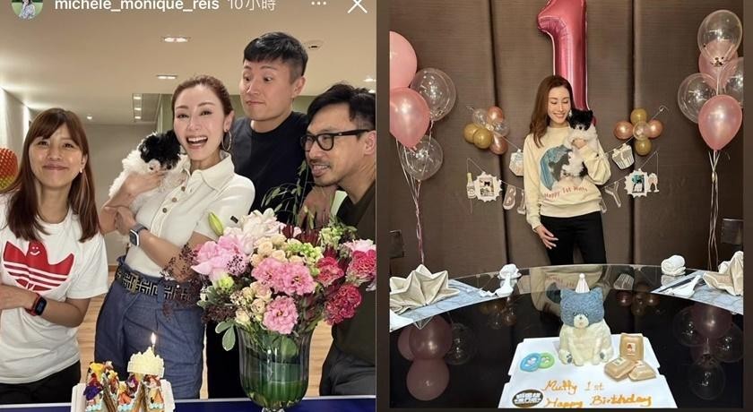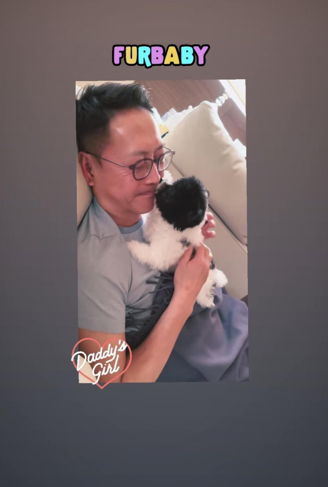 一岁的宠物狗Muffy相当受到许晋亨、李嘉欣夫妻的疼爱。