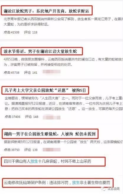 曾流窜至西双版纳和井冈山放生过毒蛇