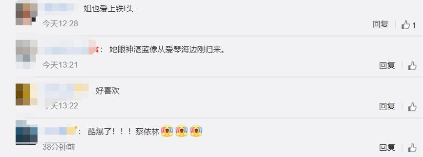 网友们纷纷在评论区里留言大赞好高级,酷爆了,还引用蔡依林的歌词“她眼神湛蓝像从爱琴海边刚归来”赞叹她的美貌,不过也有人调侃说,怎么蔡依林也喜欢上这个铁T头了。