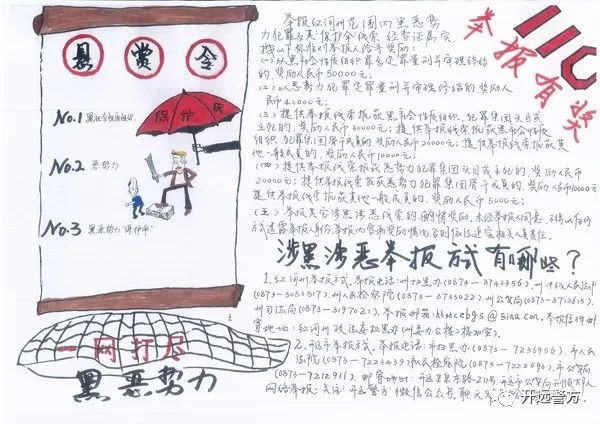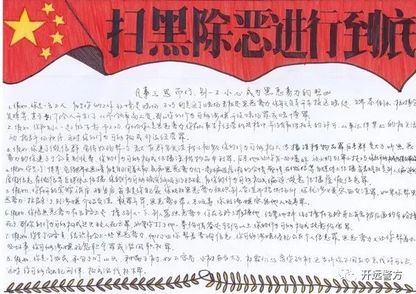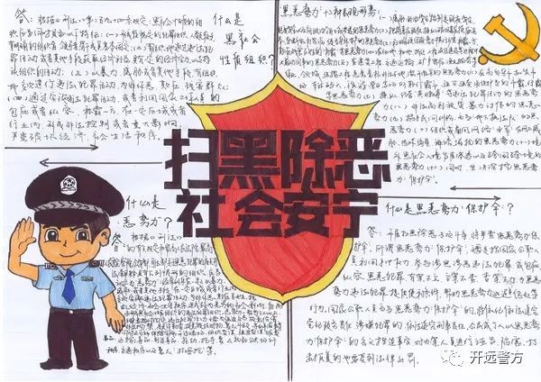 在手抄报制作过程中,巡特警大队领导多次对作品提出指导意见,在保证主题鲜明、严肃同时,确保了内容生动活泼。挑选扫黑除恶应知应会内容时,注意把握文段要点,既突出重点,也做出了自己的特点。
