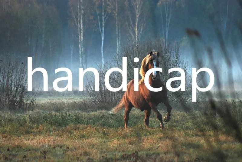 单词handicap来源出旧时一种名为hand in cap的赌博性游戏。该游戏有一条不成文的规定:为了给输者以有利条件赢回所输的钱,赢者必须在下一次发牌时多下赌注,并将多下的赌注即所谓罚金放入帽子里( hand in the cap)。