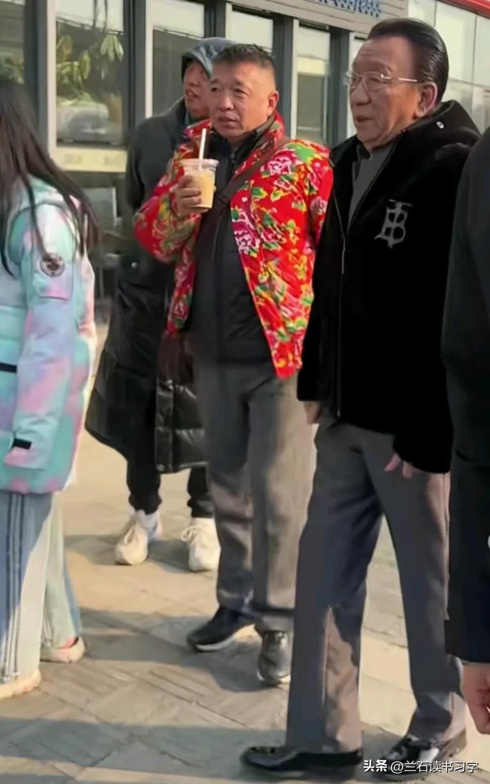 穿戴整齐的侯耀华,然后在工作人员的搀扶下,赶往楼下拍摄财神拜年那段视频。