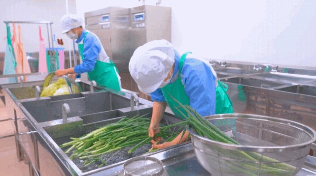 事关孩子的健康安全,日本学校不能有一丝马虎。所有的蔬果都要经过三道水池的洗刷。