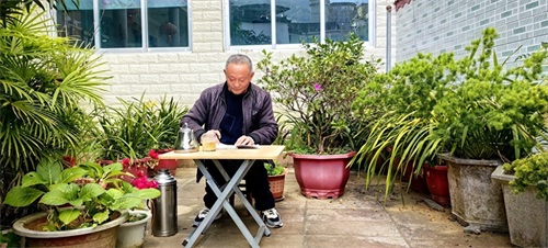 “后来,我在家里刷短视频,边唱边玩,还跟着学起了唱跳,现在我把村里的老人都约起来跳。”刘兴华不仅自己写词自己唱,2020年以后,他开始学习舞蹈,把山歌融进,带着村里的老年人一起唱跳。