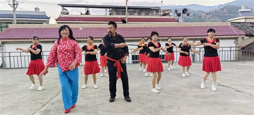 现在,洛党村每天18点以后,村里的老人就会不约而同聚集到活动场所,跟着刘兴华一起学习跳舞,研究新的舞曲。在他的熏陶下,村里的老人小孩也渐渐加入到活动中。