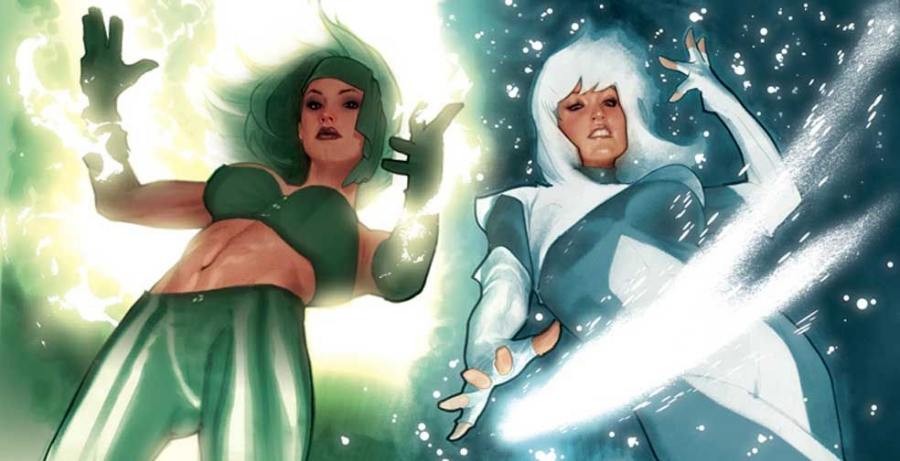 寒冰(Ice)与烈火(Fire)是DC旗下超级英雄,烈火可以呼出绿色的火焰,像火箭似飞行,并且可将身体化为火焰形态,投射白热火焰和急冻火焰;寒冰能以意念创造任意形态的冰雪物质,以此攻击敌人,吉芬(Giffen)与迪麦提斯(DeMattei)两位作者将这对闺蜜搬上台面,但可惜漫画没有过多著墨。