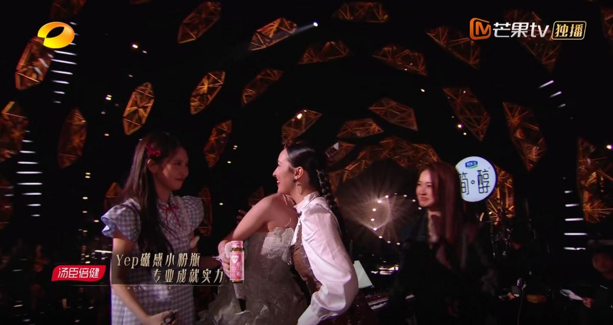 闪耀的不仅仅是她的裙子,她的外貌,还有她的个人代表作《星辰大海》。在演唱中,她宽广的音域和多变的声音就仿佛正如歌名中的星辰一般闪亮。尤其在中间段融入了朵莉亚的《人鱼之歌》,带着甜美笑容的一连串”啦啦啦“,真的像是人鱼跃出了海面在欢快地歌唱,简直就是一场视听盛宴。