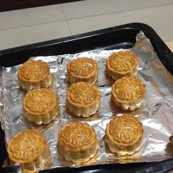 8.月饼全部做好后,整齐地摆放好,烤箱预热。上下火190度烤30分钟左右即可出炉。