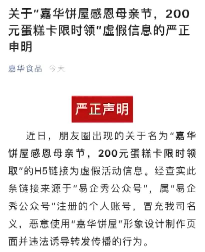 200元蛋糕卡免费领?嘉华饼屋官方这样回复