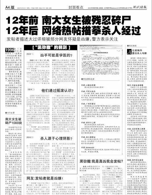 2008年7月25日第237期《南都周刊》刊文《南大碎尸案的搜集与本质》,为08年“1.19”案高潮干了归纳