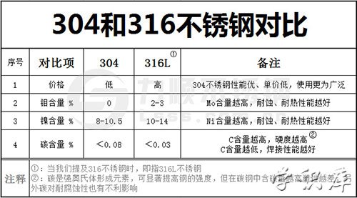 316不锈钢主要是降低铬(Cr)含量来提高镍(Ni),并且增加Mo2%~3%,所以如果不是工程师 ,不是厂家制造零件设备的,我们生活中常用的选则304就够使。