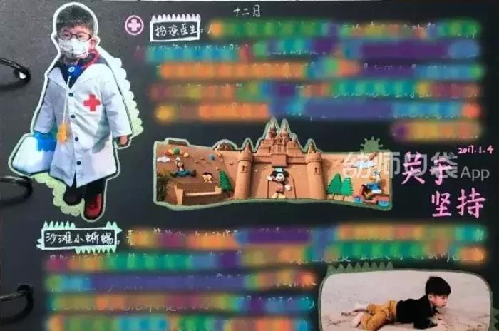 将孩子们平时上课、玩耍、睡觉的样子拍下并打印出来,在画一些有趣的手绘在上面,一本成长记录册就完成啦~