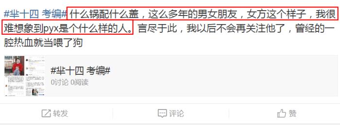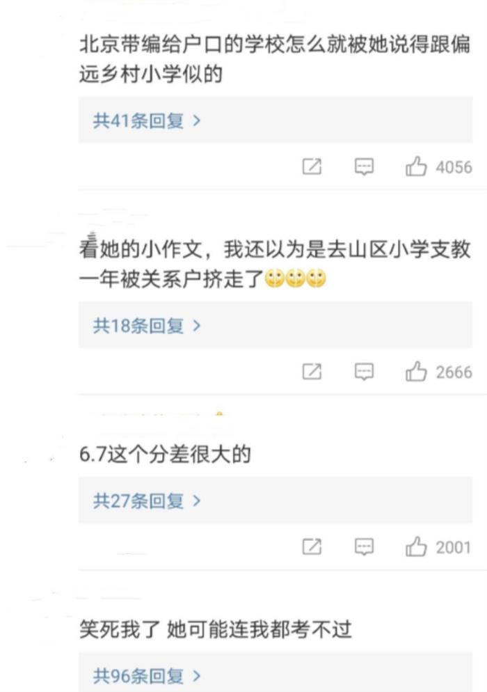 但实际上她的成绩和第一名的成绩差得比较多,属于自己没考上,没有弄清楚就内涵人家,可以说是啪啪打脸。