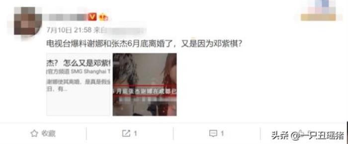 7月10日,网上突然有大V爆料,张杰和谢娜6月底已经离婚了,还是电视台曝出来的,这次离婚的原因又和邓紫棋有关。张杰和谢娜结婚多年,几乎每年都有他们夫妇离婚的消息传出,之前张杰和谢娜没有生女儿的时候,谣言更多。可是谢娜生了双胞胎女儿,还是有离婚传言,每次都是张杰和女明星传绯闻,这对夫妇“被离婚”的次数也是远超娱乐圈其他明星夫妇。
