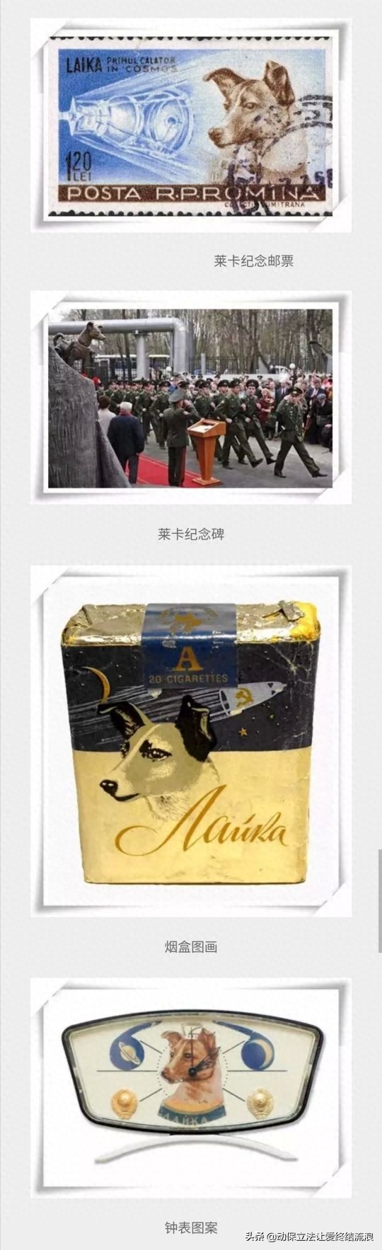 值得欣慰的是人们没有忘记莱卡,人们把莱卡可爱的样子永远留在这个世界,让人们永远记住这只为人类太空梦想牺牲自己的狗狗!