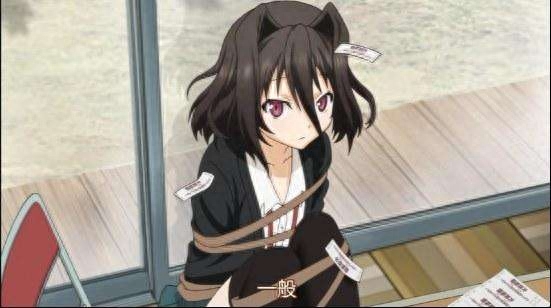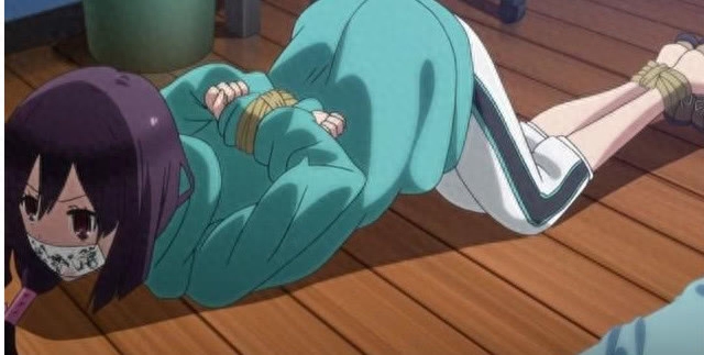 捆绑这种方式在现实中也还是存在的,比如古代审问犯人就很容易用到这一招。在动漫中那就更不例外了,无论是什么类型的动漫,作者总会为大家表演一番捆绑的绘画功力,上图中的妹子就是一个很好的例子。不过呢,这个捆绑的镜头还是属于比较正常的。