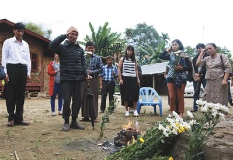 李光钿为逝世的战友烧纸钱祈祷