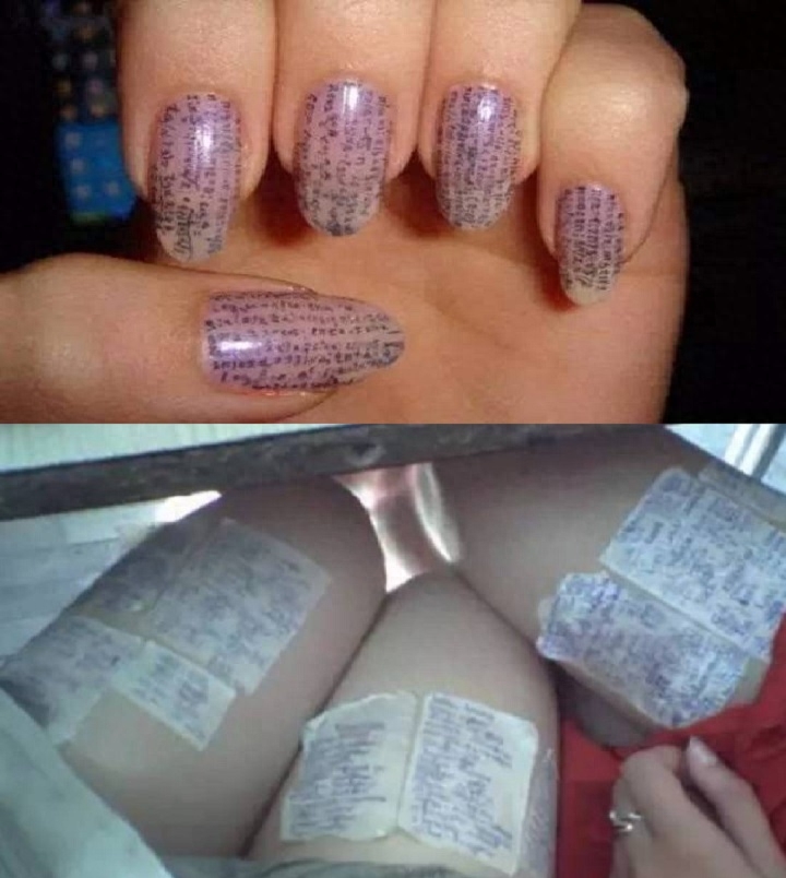 那么你有没有见过把小抄写在指甲上,或大腿上的呢?看这样的小抄,应该是需要一定视力的吧!